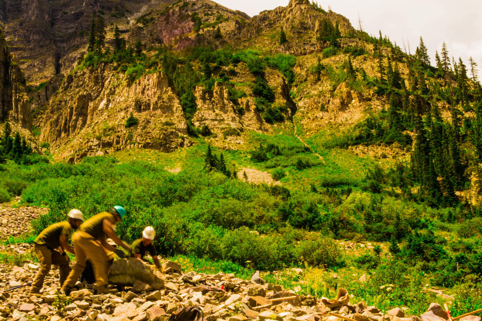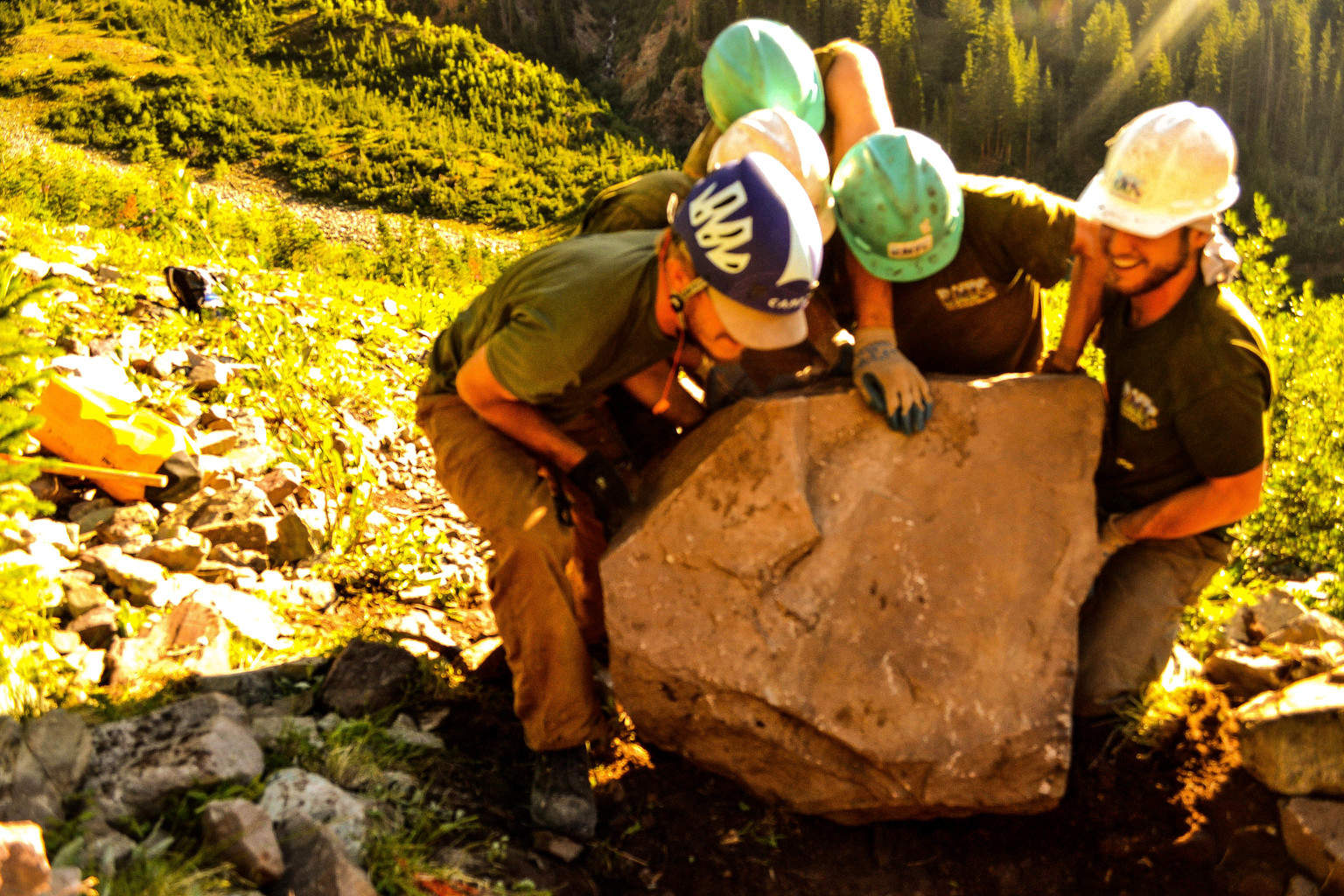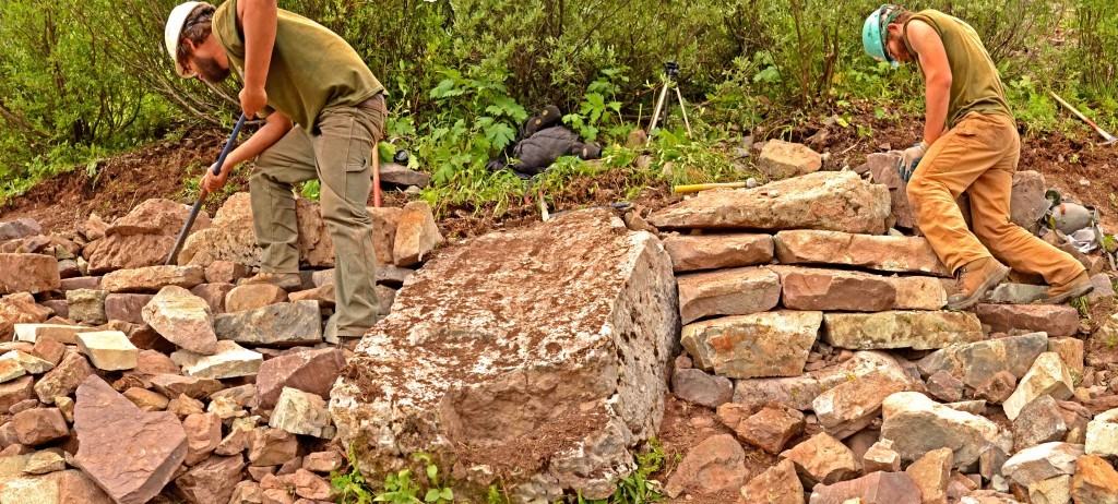 CFI works with Rocky Mountain Youth Corps to construct a rock staircase. Many of our step rocks weigh in excess of 400 pounds.