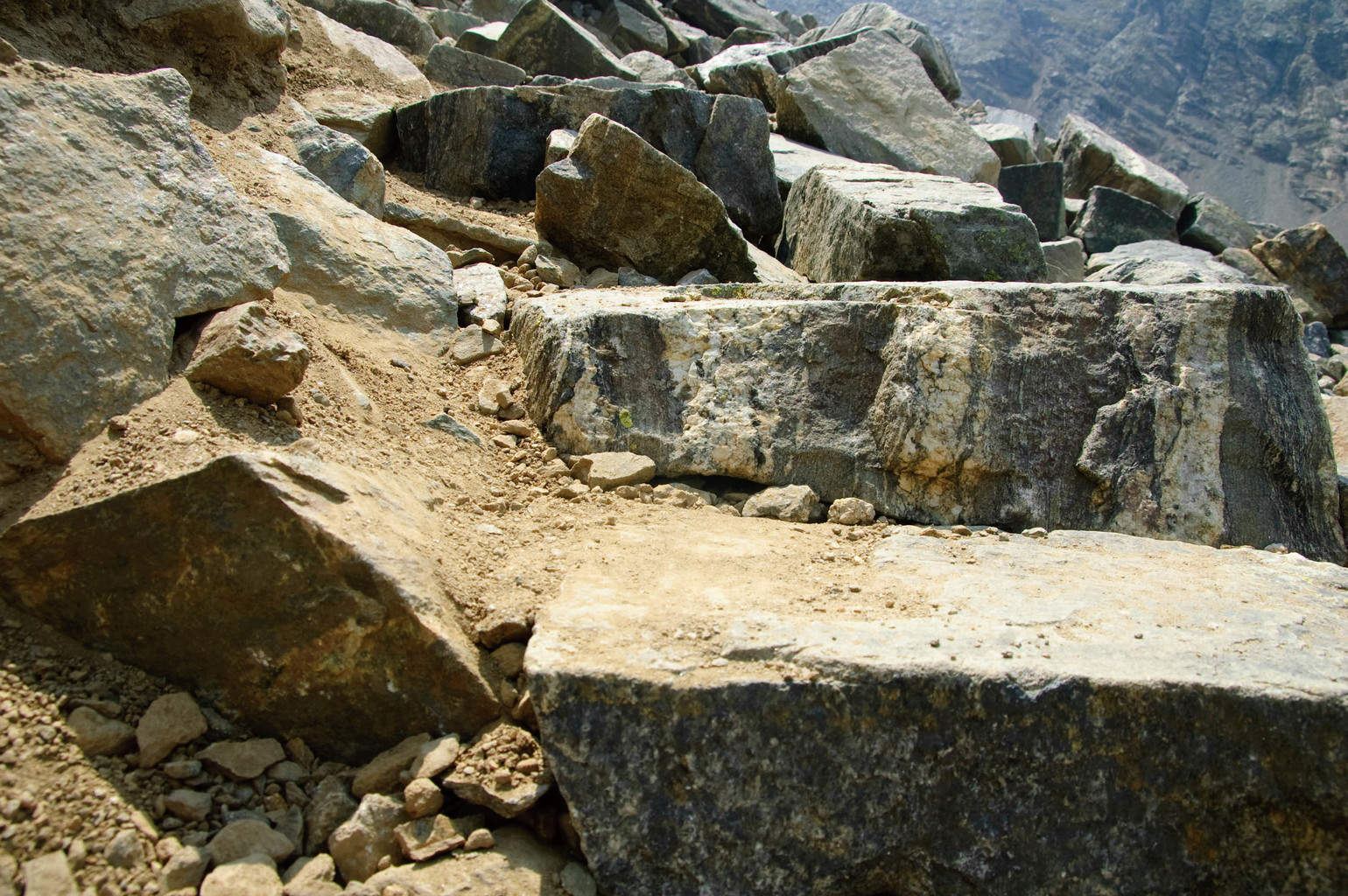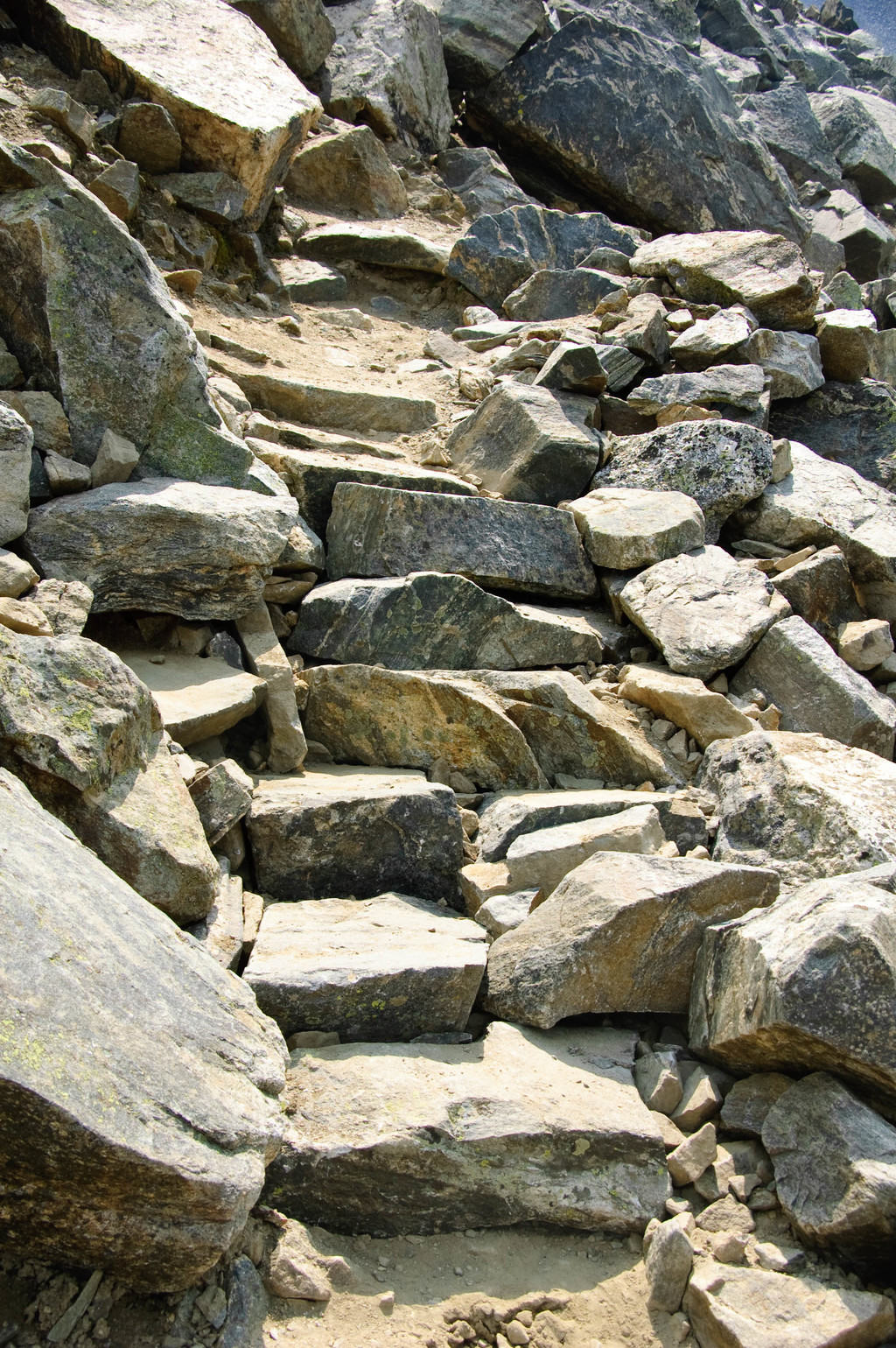 We shuttled volunteers to the upper trailhead, then hit the trail, tools in hand. It was a long, arduous hike to the middle slopes of Grays Peak, and I had a very specific goal in mind. I needed a work site that was a couple hundred feet long and required substantial maintenance. A short distance below the upper switchbacks leading to the summit, I stumbled across a beautiful (and by “beautiful”, I mean “hideous”) stretch of trail. No sense in pushing on when the solution was right under my feet. We re-grouped, and I lined out five separate work sites, each with three-to-five volunteers.