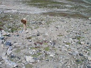 In both of these pictures, notice how the once visible trail is now difficult to pick out from the surrounding landscape. This was, of course, our goal. Now from the bottom site.