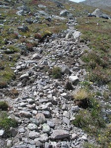 We took two groups (WRV [Wildlands Restoration Volunteers] and CDTA [Continental Divide Trail Alliance]) into the Massive wilderness for separate backpacking trips. Both of these groups focused on restoring the recently rerouted unsustainable trail scar still visible from 13,200 ft to 13,600. While “Trail Closed for Restoration” signs were placed at the top and bottom of the old trail, footprints indicate that some rebels were still impacting the closed trail.